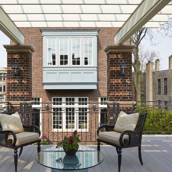 Set on one of DePaul’s most charming streets, this eight-bedroom, seven-bathroom home is a timeless nod to classic Georgian design. Its defining feature—a striking three-story elliptical staircase—anchors the home along its southern wall. Designed for both elegance and family living, the main floor includes formal living and dining rooms alongside a spacious kitchen and great room, which opens to 1,000 square feet of outdoor space. A rear staircase connects the kitchen to the lower-level family room for added convenience. The second floor offers a luxurious primary suite and three additional bedrooms, while the third floor features a reception room with access to a roof deck and sweeping city views. Recognized for its thoughtful design, this home was honored with the 2016 AIA Small Project Award.